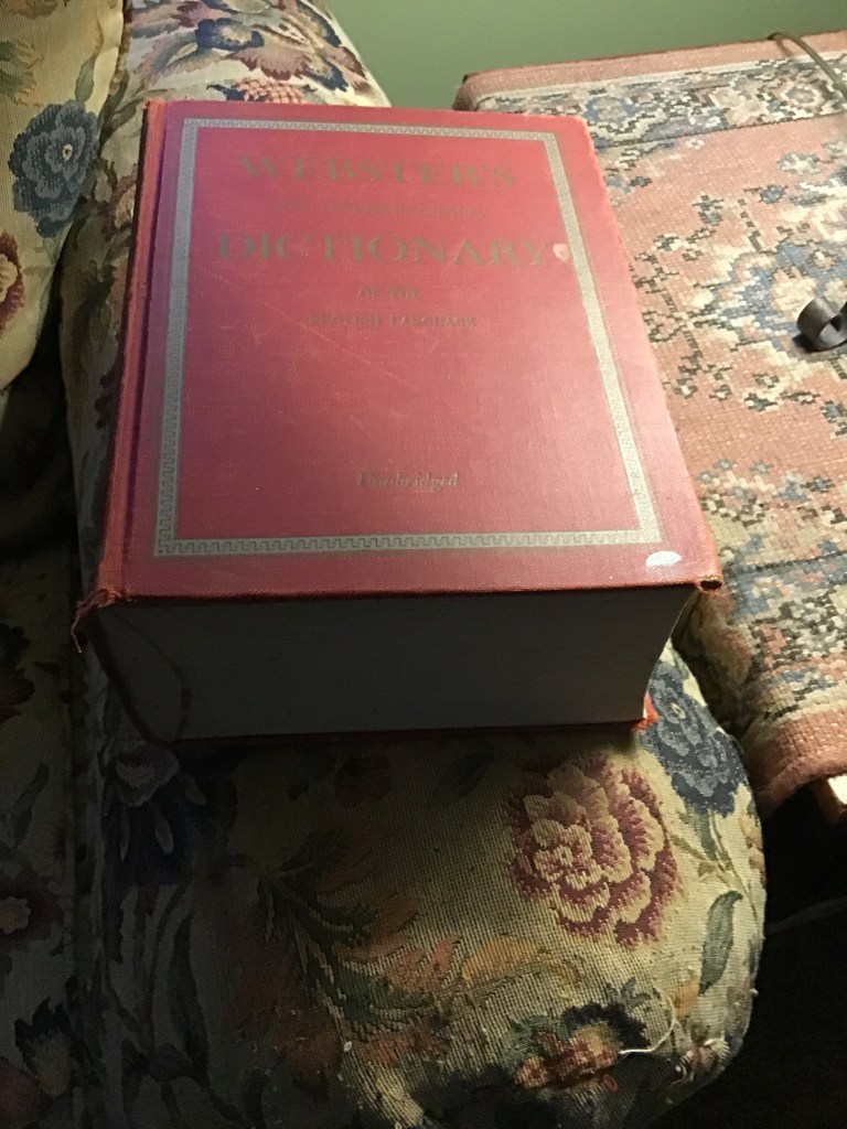 When I was a child, my Grandmother kept a 30 lb, gargantuan Webster’s Dictionary printed in 1932, a tome that I perused endlessly in a corner of her library with the fascination only a weird, wordy child could summon. I thought my father had thrown it away long ago. Nope. As I settle my family’s estate at last, it was joyfully rediscovered and is coming home with me to California … even though its home has always been my heart.