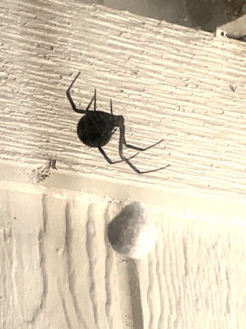 BY THE WAY: Below is a photo of “Gladys.” She lived in an upper corner beneath the eave connecting my main house and the attached garage until she finally crossed the Rainbow Web and went to that Great Venomous Spider Paradise in … some other extraterrestrial hidey hole … about two weeks ago. She survived two brutal years of severe California weather, but the last grasshopper she caught and the last of four egg sacs she produced apparently taxed her spiderly reserves beyond recuperation. Sayonara, Gladys. It was fun lookin’ at ya—from a distance—kiddo.