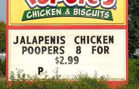 Pfffft! I get my jalapenis chicken poopers at a little joint that charges only $1.99 for twelve poopers AND provides a free vomit-bag + roll of toilet paper for the inevitable post-meal reactions. I’m never going to reveal the location of this pooper goldmine, either, so dream on, plebeians.